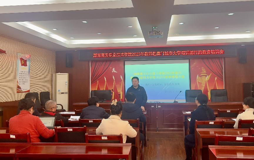 11月28日下午,2023年教师出国(境)培训团行前教育培训会在办公楼B419会议室举行。党委委员、组织人事部部长刘谦和8名拟于12月初赴澳门城市大学开展培训研修的教师参加会议。