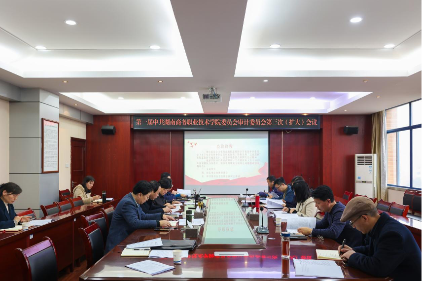 1月10日上午,学院召开了第一届中共湖南商务职业技术学院党委审计委员会第三次(扩大)会议,学院党委书记、审计委员会主任周忠新出席会议,院长李定珍、其他审计委员会成员及相关部门负责人参加会议,党委副书记、审计委员会副主任廖志刚主持会议。