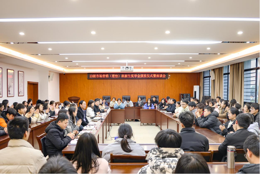 1月18日,23级市场营销(楚怡)班新生奖学金颁奖仪式暨座谈会在崇理楼109会议室举行,党委书记周忠新出席颁奖仪式并致辞,现场为31位品学兼优的同学颁发奖学金证书。