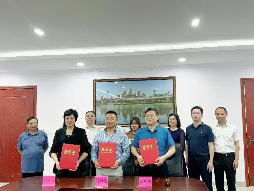 为响应湖南职业教育服务国家“一带一路”战略,2024年4月25日,湖南商务职业技术学院院长李定珍率队随同湖南省茶业集团股份有限公司董事长,湖南省茶业协会会长,周重旺一行,赴东盟核心国家之一---柬埔寨首都金边,考察当地的中资企业---柬埔寨健康农业公司基地,传播湘茶文化,签署校企协合作协议并举行基地揭牌仪式。