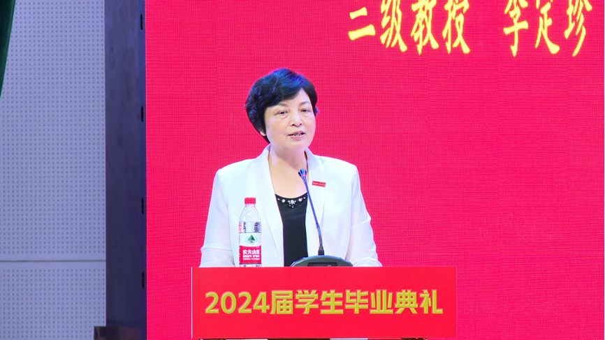 院长李定珍代表学院对顺利完成学业的同学们表示祝贺,并深情寄语毕业生,坚定信仰、矢志不渝,努力成为“忠诚可靠、心怀寰宇”的人。将个人的理想融入国家的伟大事业中,将个人的奋斗与国家的繁荣紧密相连,积极投身到国家的建设和发展中去;终身学习、砥砺前行,努力成为“轮扁斫轮、匠心独运”的人。将所学所得付诸实践,用智慧和才能解决实际问题,为社会的发展贡献自己的力量;博施济众、积德存善,努力成为“乐善好施、手捧幸福”的人。以友善和热情的态度对待他人,以宽广的胸怀包容世界,能够洞察世事、明辨是非,以博大的爱心温暖他人,成为一个真正有智慧、有品格、有情怀的人。
