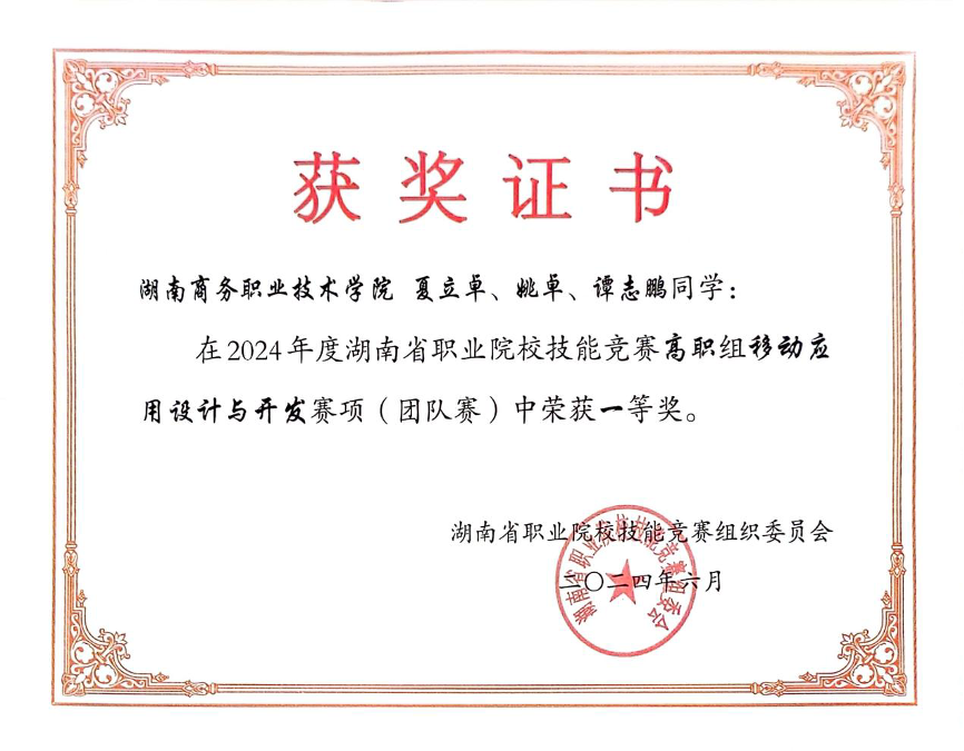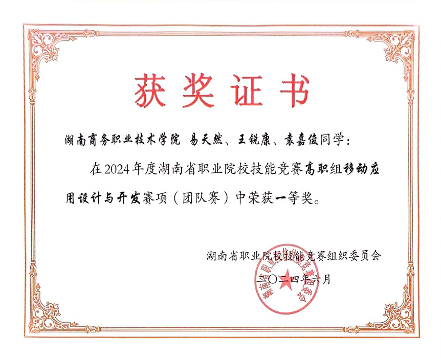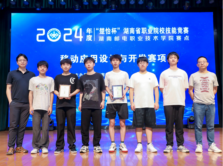 2024年6月17日,“楚怡杯”湖南省职业院校技能竞赛电子信息类移动应用设计与开发赛项在湖南邮电职业技术学院落下帷幕。由皮卫、廖清远、李庆三位老师指导的两个团队从全省85支队伍中脱颖而出,均荣获一等奖。