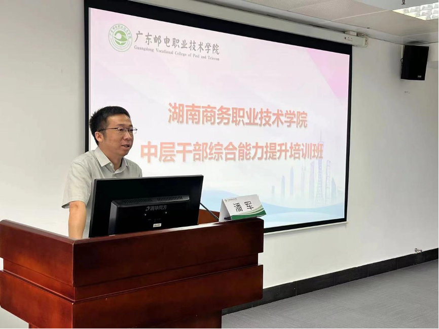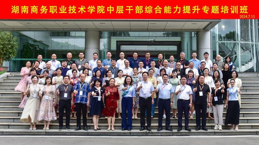 7月14日-19日,湖南商务职业技术学院中层干部综合能力提升培训班在广东邮电职业技术学院圆满结业,学院党委书记潘军出席结业仪式并讲话,60余名中层及以上干部参加培训。