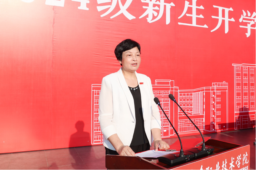 李定珍代表学院向2024级新生表示热烈欢迎。她指出,商务职院是一所历史悠久、底蕴深厚的学校,它诞生于新中国初生的曙光之中,与国家同呼吸、共命运,于民族复兴的壮阔征程上茁壮成长,见证了时代的风云变幻,铸就了不朽的辉煌篇章。李定珍勉励商职学子瞭望星空,立鸿鹄志,把准人生航向,无论顺境还是逆境,都不坠青云之志;脚踏实地,有勇有为,精研镂冰之技,以鹰隼之眼洞察世事,以赤子之心拥抱社会,以行动铸就责任之碑,担当之塔;厚德载物,器量宽宏,涵养人生格局,以崇高之品德为舵,宽广之胸怀为帆,驶向波澜壮阔、气吞万里的人生航线,铸就非凡人生格局。