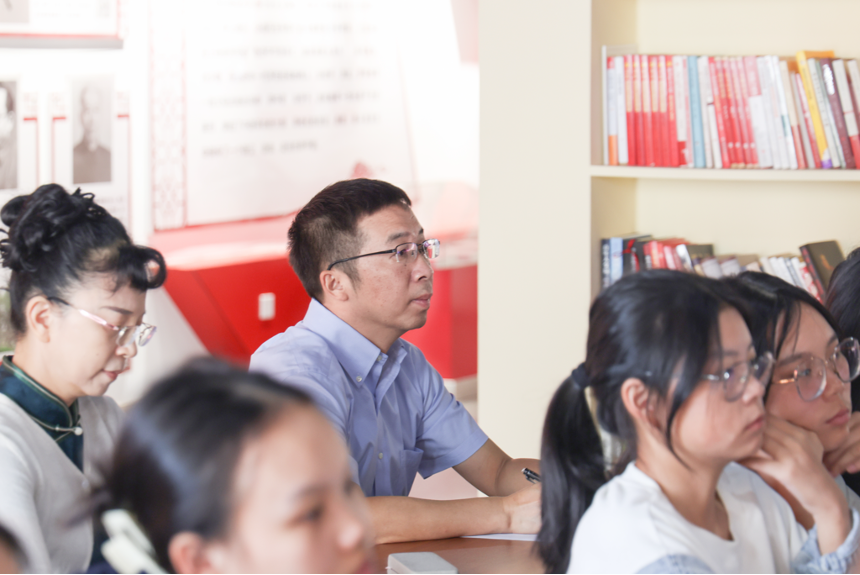 “这种沉浸式教学课堂让学生感受到了接地气的思政教育,非常好”,党委书记潘军在听完《毛泽东思想和中国特色社会主义理论体系概论》课后,为授课老师的授课内容、教学方式、课堂互动交流等点赞,并提出要用党的创新理论成果引领学生,深入发掘生动案例,把思政课道理讲深、讲透、讲活,激发学生的思考能力,抓好课堂育人主阵地。