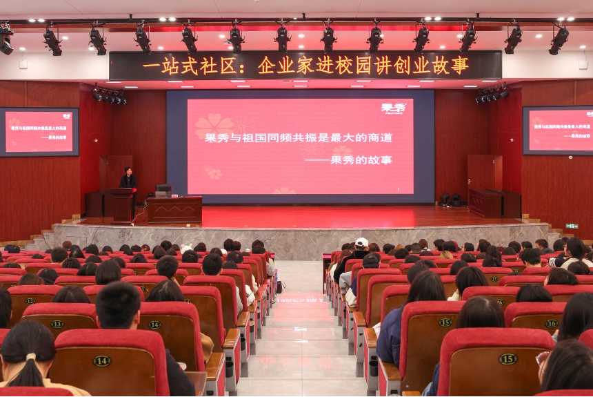 果秀公司董事长阳国秀进校园分享创业故事:与祖国同频共振是最大的商道
