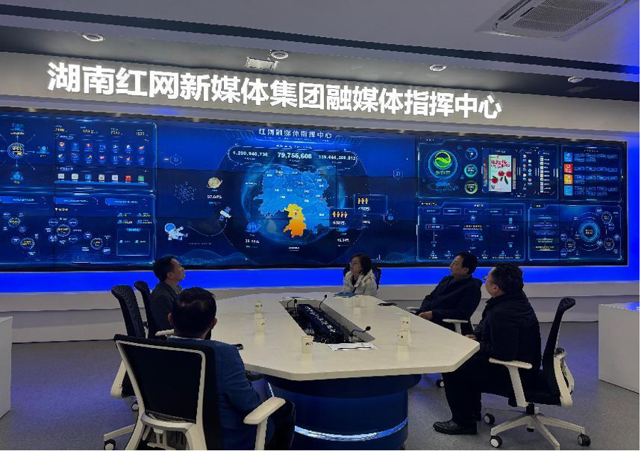 最后,廖志刚一行来到红网融媒体指挥中心考察,详细了解红网在新闻采编、舆论引导、政务服务等方面的经验做法。红网党委书记、董事长贺永祥介绍了湖南红网新媒体集团的发展历史、运营特征、核心业务等情况。廖志刚希望红网一如既往地关注和支持学校宣传工作,进一步加强合作。