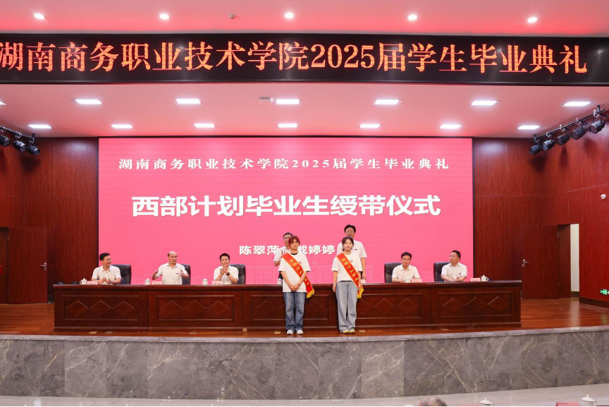 “再见了相互嫌弃的老同学,再见了来不及说出的谢谢……”6月17日,当这首独属于毕业季的旋律在湖南商务职业技术学院报告厅响起时,台下2025届300余名毕业生代表中,有人悄悄抹去了眼角的泪水。在32℃的盛夏骄阳里,那些被汗水浸透的荣誉证书、创业者的第一桶金故事、退役军人的飒爽敬礼,成为这场告别仪式最动人的注脚。