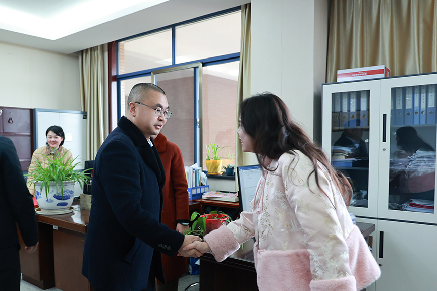 “大家新年好!”“新学期辛苦了!”带着浓浓的春意和关怀,潘军书记、李科校长一行首先来到各职能部门办公室,亲切慰问了已提前进入工作状态的教职员工。每到一处,校领导都与大家一一握手,亲切交谈,详细询问假期生活和工作准备情况,了解办公场所的设施配备及运行状况,并勉励大家在新学期里,以更加饱满的热情、更加昂扬的斗志,立足岗位,再创佳绩,为学校高质量发展贡献力量。