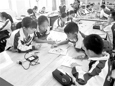 成都市石室蜀都中学的孩子正在焊接小徽章。(资料图片)