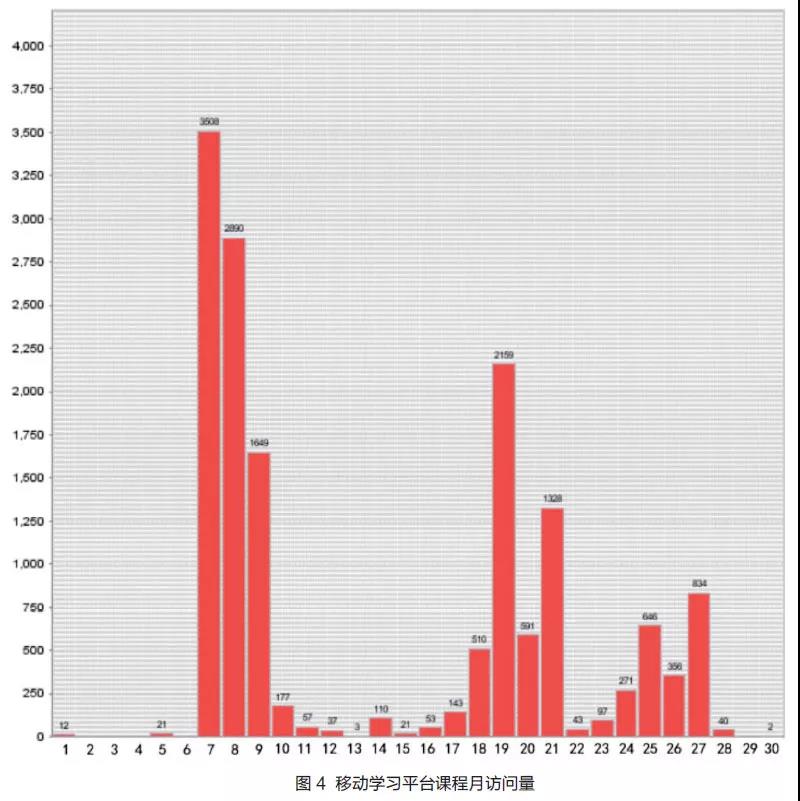 基于Sakai的浙江大学移动学习平台已经正式运行了一段时间,无论是教学内容表现形式、浏览下载速度、教师学生反馈等方面都得到了较高的评价。图4是移动平台课程单月的访问量。