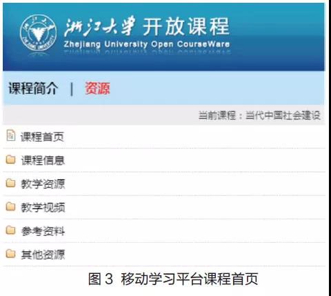 浙江大学移动学习平台课程模块包括课程基本信息、教学资源、教学互动等几大内容,具体如图3所示。