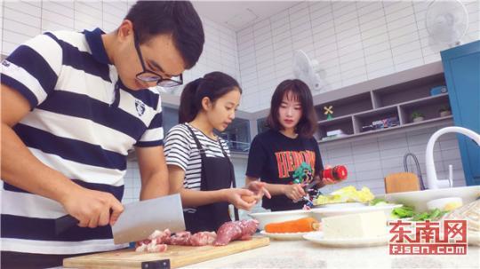 洗菜、切菜、烹饪……傍晚饭点,福州大学紫金矿业学院2017级学生张玉松正在福州大学共享厨房里与同学紧张地忙碌着。上个月,福建首家高??攀匠抗蚕聿吞诟V荽笱Э?,受到不少学生的关注。