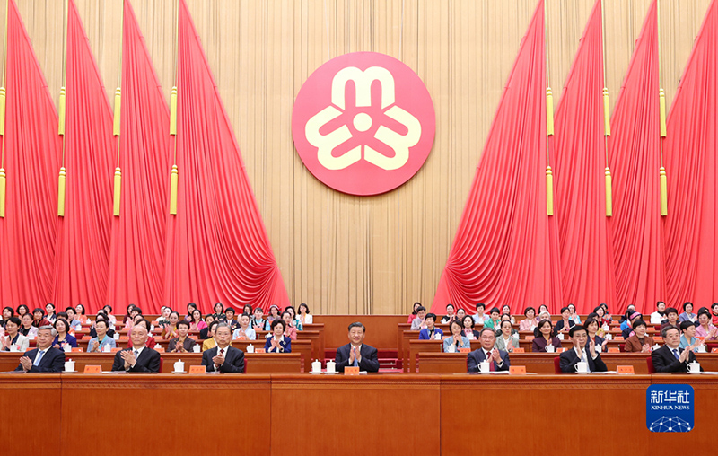 10月23日,中国妇女第十三次全国代表大会在北京人民大会堂开幕。习近平、李强、赵乐际、王沪宁、蔡奇、丁薛祥、李希等在主席台就座,祝贺大会召开。(新华社记者 姚大伟/摄)