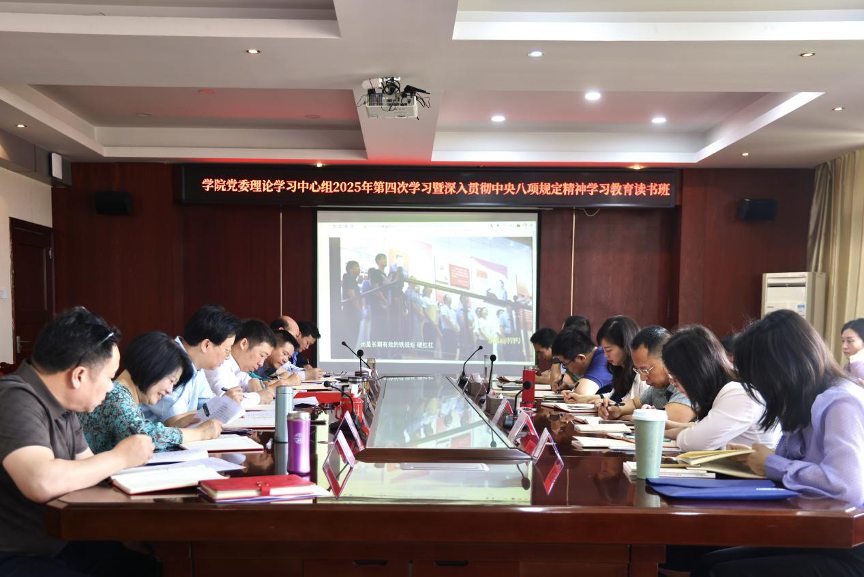 4月11日,学院党委理论学习中心组第四次集体学习暨深入贯彻中央八项规定精神学习教育读书班举行。党委书记潘军主持并作总结讲话,学院领导班子成员围绕主题作研讨发言。