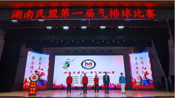 本网讯(通讯员 欧阳晓婷)10月31日,民盟湖南省委会、民盟长沙市委联合举办湖南民盟第一届气排球比赛,比赛由我院民盟支委承办。湖南省政协副秘书长、民盟湖南省委会专职副主委胡颖,民盟湖南省委会副主委、省地质院院长何寄华,长沙市政协副主席、民盟长沙市委会主委、市市场监管局局长张庆和,湖南商务职院党委书记周忠新,民盟湖南省委会常委、湖南商务职院院长李定珍出席开幕式。民盟湖南省委会秘书长刘春阳主持开幕式。民盟长沙市委会相关领导参加开幕式。