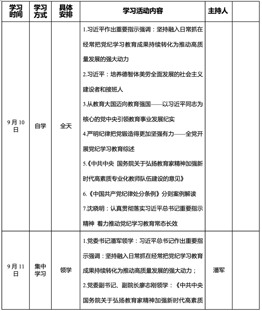 9月10日(星期二)全天自学,9月11日(星期三)集中学习。