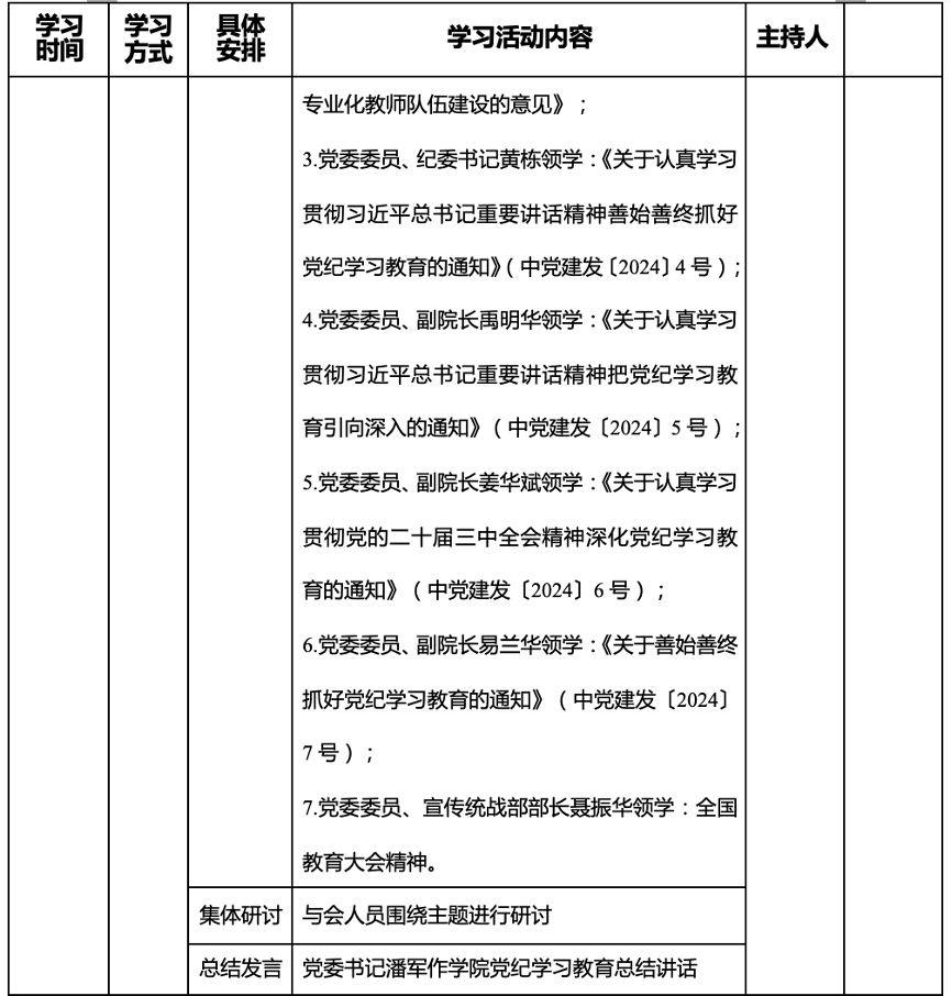 根据学院工作安排,传达学习贯彻习近平总书记对党纪学习教育作出的重要指示精神,对全院党纪学习教育进行总结,组织召开学院党委理论学习中心组2024年第九次集中学习暨党纪学习教育总结会。