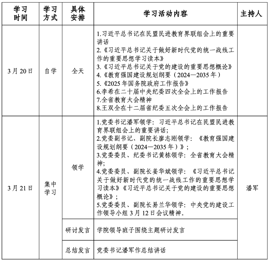 根据学院工作安排,落实全国教育大会要求,深入学习习近平总书记最新讲话精神和全省教育大会精神,组织召开学院党委理论学习中心组2025年第三次学习。