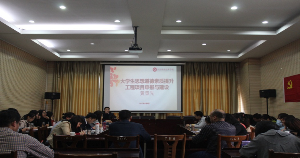 图为长沙职业技术学院学工部黄策先副教授作题为《大学生思想道德素质提升工程项目申报与建设》的主题讲座