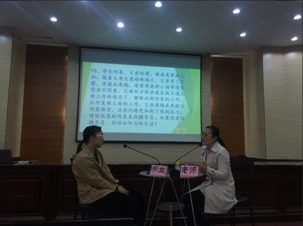 我院全体一线专职辅导员均参加了谈心谈话的比赛,本环节以情景再现方式进行。选手们围绕谈话主题,从辅导员的工作职责出发,结合自身工作实践,循循善诱,引导学生正确认识生活中遇到的各种问题,并指引学生以正确方式解决。选手们的精彩表现赢得了现场阵阵掌声。