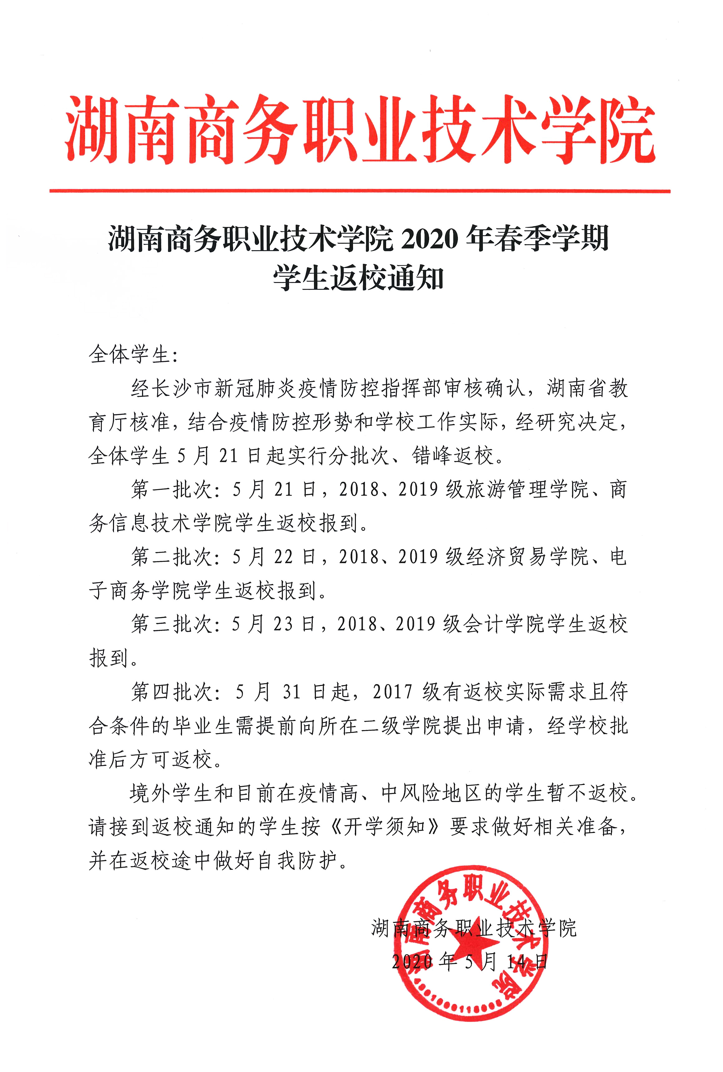 2020年春季学期学生返校通知
