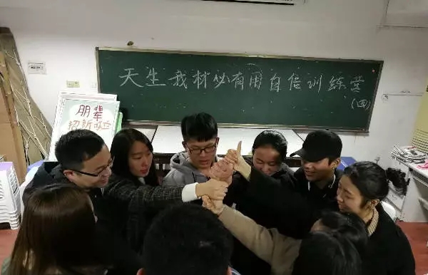 E:自信是我们人生成功的基石。通过这次自信营的培训,让我受益匪浅。荣幸的认识这一群朋友还有陈铁老师和汪文康学长。勇于面对困难,勇于尝试第一次,勇于告诉自己我能行,这些让我以后的生活会更加自信,更加美好。