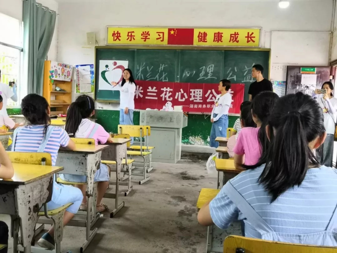 心理健康教育现在成为了社会高度关注的问题,源于太多因为心里疾病所造成的悲剧上演的越来越频繁,让人们扼腕痛惜。社会的压力,学业的压力,工作的压力,都不同程度对人们造成了心灵的创伤。然而,心理疾病的产生是一个缓慢的过程,也容易被忽视,因此,我们应当把心理健康教育重视起来,普及起来,并且要从娃娃抓起,从小就要培养小朋友积极向上的阳光心态,以及有爱坚强的博大胸怀。此行我们“三下乡”小分队来到湖南省岳阳市岳阳楼区健康路西塘镇三河中心小学,给同学们上了一堂关于“米兰花心理健康”的公益课。