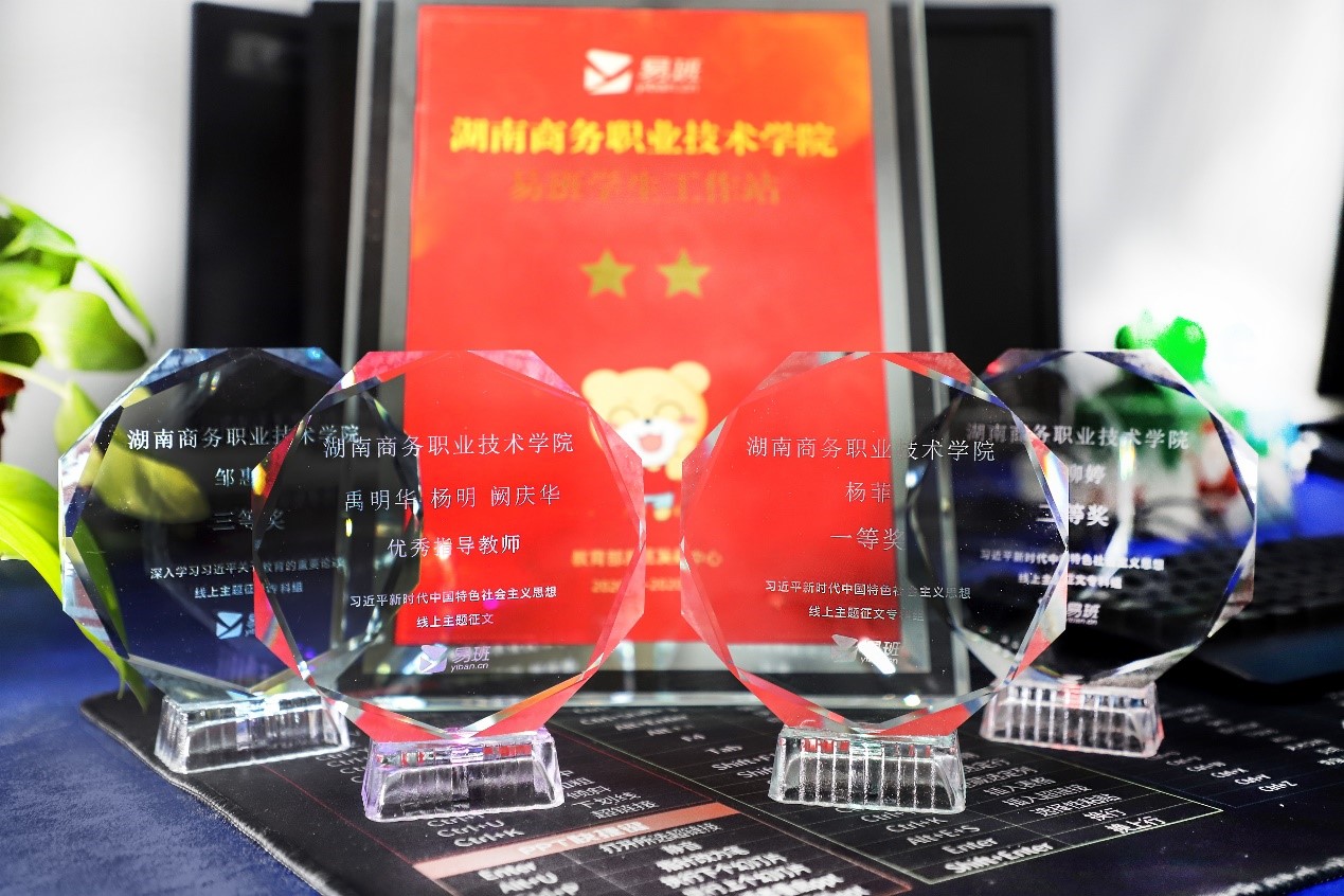 在全国易班网“习近平新时代中国特色社会主义思想线上主题征文”活动中,18旅游管理2班杨菲、黄柳婷两位同学分获专科组一、二等奖(全国专科组设一等奖5名、二等奖10名),禹明华、杨明、阙庆华获优秀指导老师;在“学习习近平关于教育的重要论述线上主题征文”活动中,19会计7班邹惠琪同学获专科组三等奖(全国专科组设三等奖15名)。