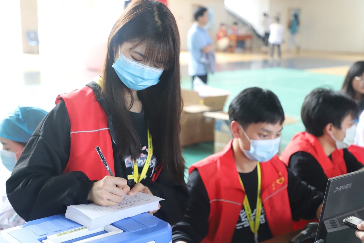疫苗接种工作持续进行三小时,由学生自委会干部以及经济贸易团总支组成的志愿者,他们用忙碌的身影构筑起校园健康的防护墙,协助现场医护人员进行疫苗接种工作,确保我院疫苗接种工作顺利完成。