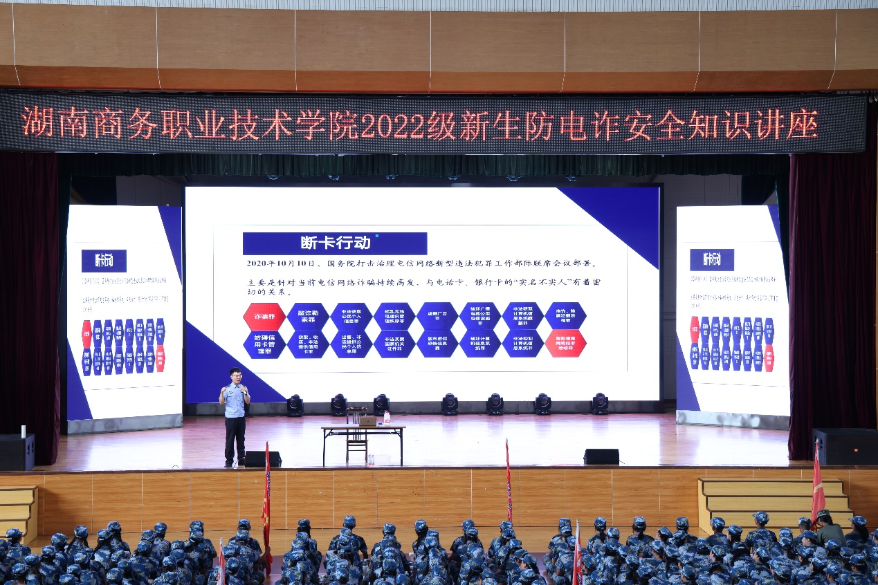 为加强2022级新生安全教育,提高安全防范意识,普及安全知识,预防校园电信网络诈骗案件发生,确保校园消防安全,上好“安全教育第一课”,学校保卫处精心组织的“2022级新生安全教育”活动于9月14日在体育馆拉开了序幕。活动由学校保卫处周旭处长主持,廖良林副院长出席。