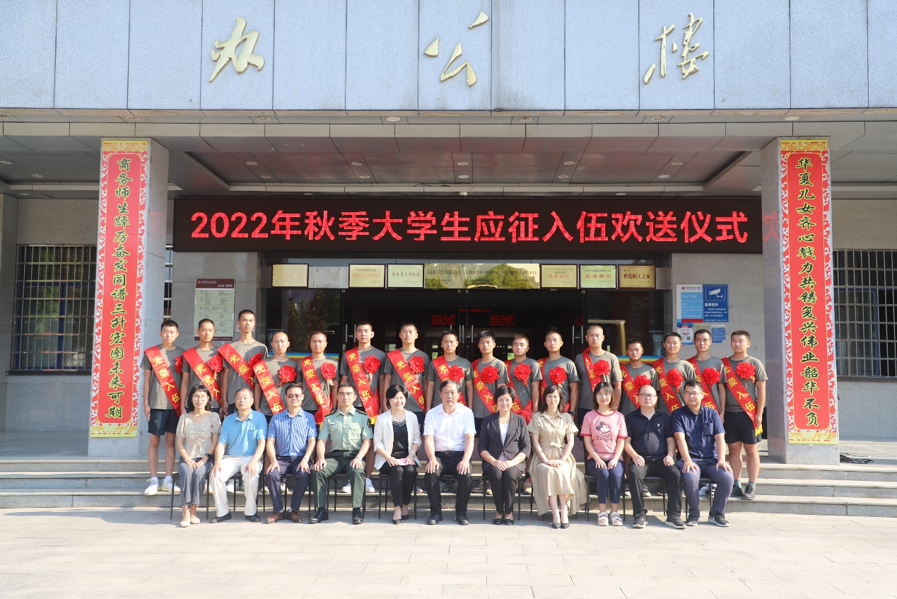 9月13日,学院举行2022年秋季应征入伍大学生欢送仪式,欢送16名大学生应征入伍。党委书记周忠新、院长李定珍出席仪式并为应征入伍学生佩戴大红花、绶带。