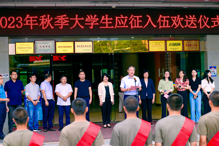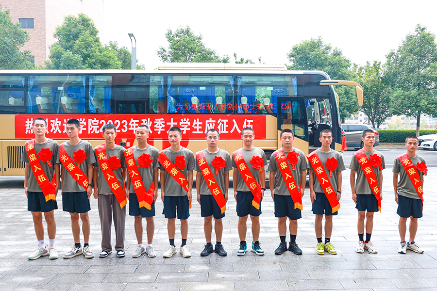 9月12日,学院举行2023年秋季应征入伍大学生欢送仪式,11名大学生身着戎装,整装待发,从大学启程奔赴军营。