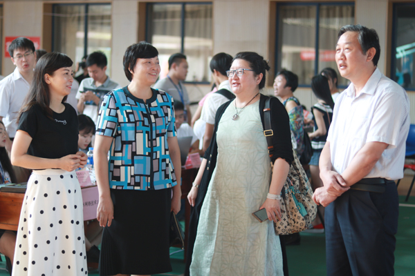 周忠新书记(右一)、李定珍校长(左二)亲临报到现场指导工作