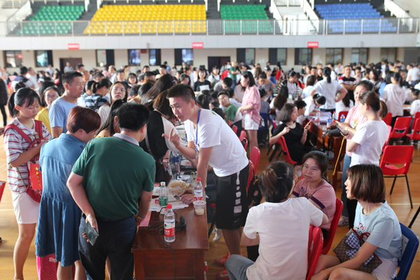 报到主场设在体育馆,尽管两天时间内体育馆内人流络绎不绝,但各项工作井然有序、有条不紊。“同学你好!请出示录取通知书,请扫码、请领卡……”在工作人员的指引下,广大新生凭录取通知书、身份证只需要几分钟就可以完成报到办理。学校主要领导,各职能部门主要负责人和各二级学院负责人一直坚守在迎新现场指导新生报到工作,迎接新同学。学校党委书记周忠新、校长李定珍亲切慰问前来报道的新生和学生家长,并认真听取他们对学校发展的意见和建议。