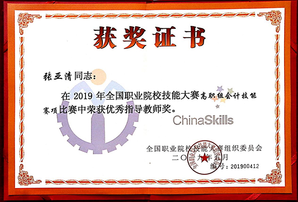 我院荣获2019年全国职业院校技能大赛会计技能赛项一等奖第一名