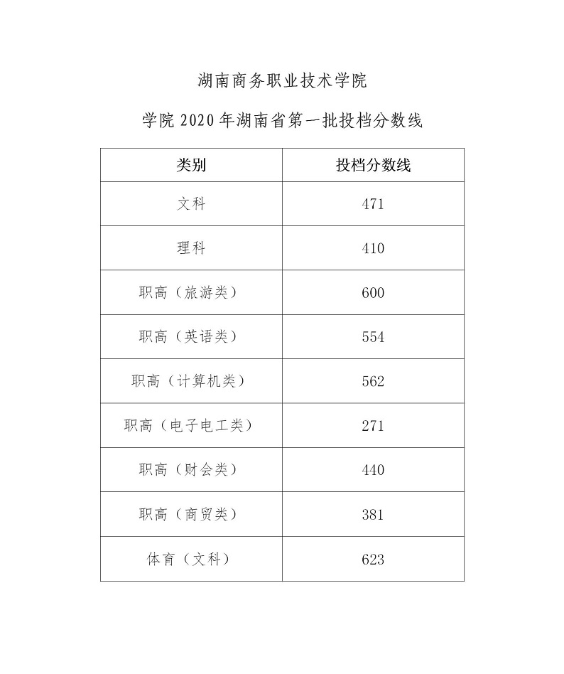 学院2020年湖南省第一批投档分数线