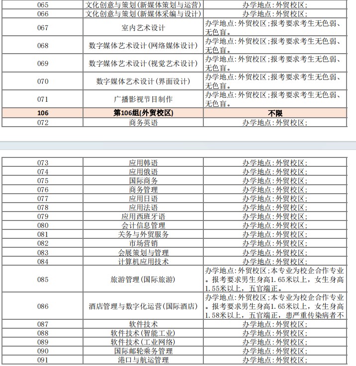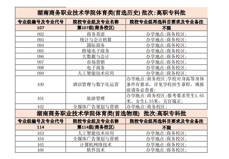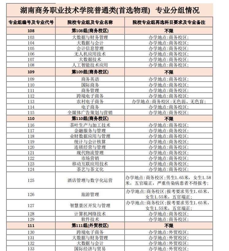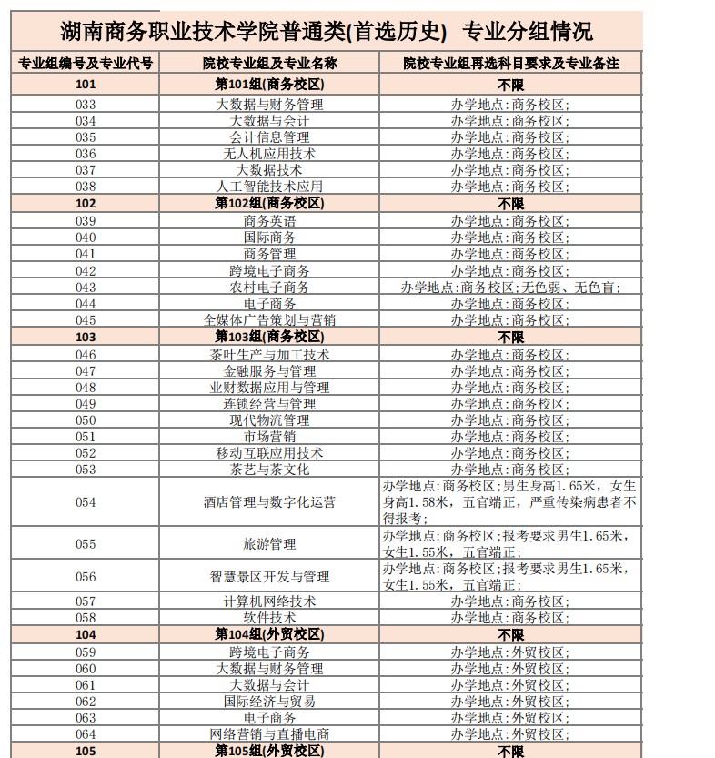 2025湖南商务职业技术学院专业分组情况