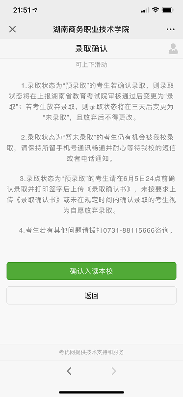 1.预录取考生确认录取后即为正式录取,录取状态将在确认三天内变为“录取”。