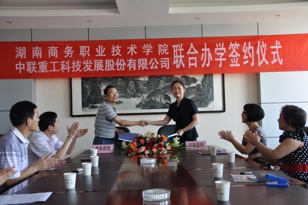 长沙中联重工科技发展股份有限公司创建于1992年,是颇具实力的上市公司,是中国工程机械装备制造领军企业,2010年在全球工程机械行业排名第7位,在“中国企业500强”中一直名列前茅。此次与中联重科科技发展有限公司的合作,是我院校企合作办学,用企业文化、岗位实践技能进行“订单式”人才培养一个方面。届时,我院在电信系2011级电气自动化专业开设“中联班”,学生在校学习的前两年,中联重科将委派讲师到校指导授课,将中联重科企业文化、企业制度和专业知识贯穿到各个学期之中,第六个学期,学生进入公司顶岗实习。学生拿到毕业证即为实习期满,实习考评合格者可以与中联重科签订正式劳动合同,进入公司就业。