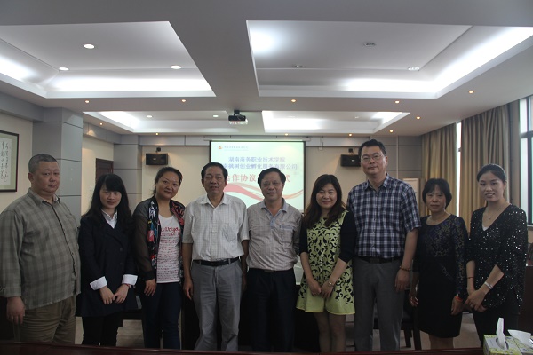 仪式上,陶处长首先对湖南枫树创业孵化服务有限公司一行人的到来表示热烈的欢迎,随后宣读了合作协议条款。经双方讨论确认后,湖南枫树创业孵化服务有限公司胡伟总经理与我院党委委员禹明华教授正式签署了合作协议。