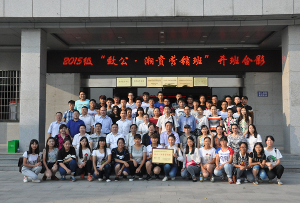 9月16日下午4时,湖南“一家一”助学就业•同心温暖工程“致公•湘贵营销班”开班仪式在我院举行。作为省委统战部教育扶贫工作的一部分,此次致公党湖南省委、长沙市委结盟长沙湘贵实业有限公司和学院,对我院2015级市场营销4班的50名学生开展一对一资助帮扶??啾曛咀藕?ldquo;一家一”助学就业•同心温暖工程再次喜结硕果。