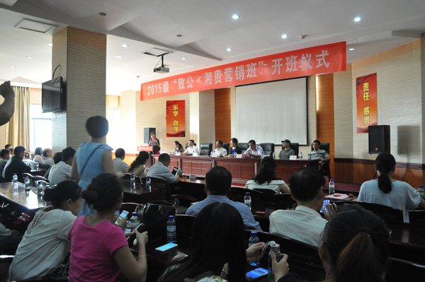 出席此次开班仪式的有:致公党湖南省委专职副主委应若平、长沙市委专职副主委黄光裕、致公党湖南省委社会服务处处长沈蓉、致公党长沙市委秘书长枭燕、我院党委书记周忠新、院长孔军山、长沙湘贵实业有限公司董事长王静、学院副院长杨文涛、廖良林,党委委员、宣传统战部部长禹明华,经济贸易系主任易能、经营管理系主任易兰华、长沙湘贵实业有限公司副总经理苏双国、邓美香、林丽等。学院党委委员、宣传统战部部长禹明华主持开班仪式。