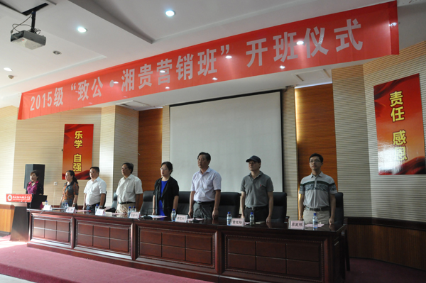仪式上,学院党委书记周忠新宣布“致公•湘贵营销班”开班!