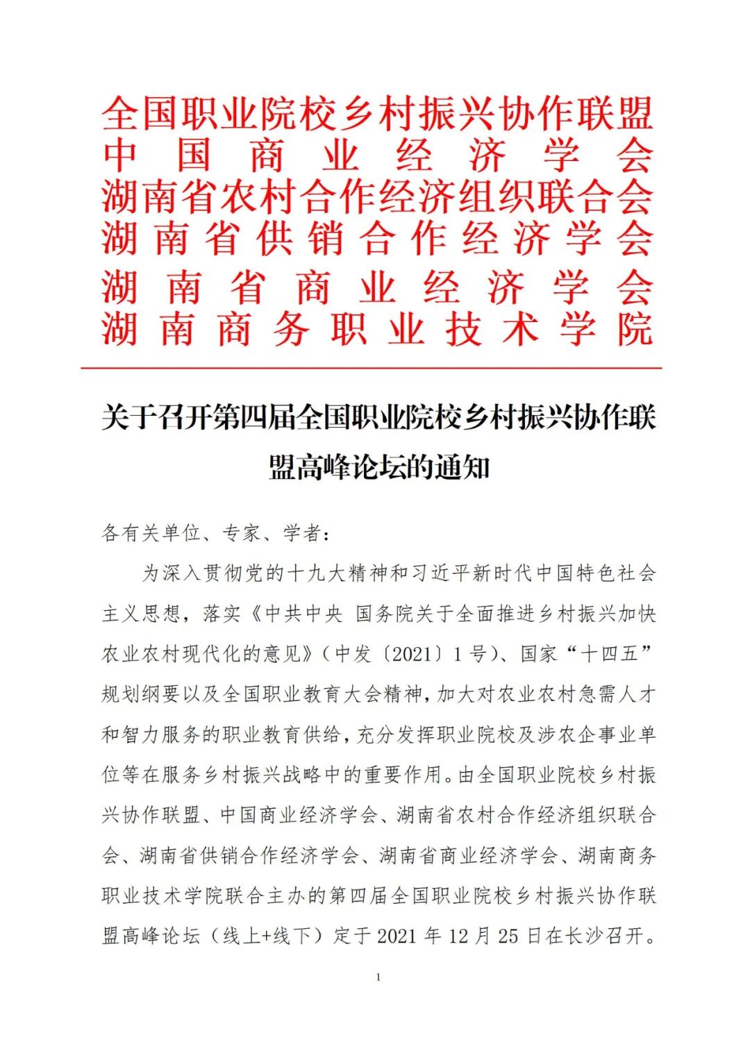 关于召开第四届全国职业院校乡村振兴协作联盟高峰论坛的通知