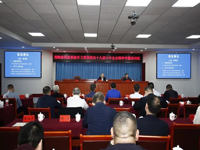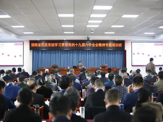 为深入学习贯彻党的十九届六中全会精神,推进新时期全省民政事业高质量发展,3月8日至12日,湖南省民政系统学习贯彻党的十九届六中全会精神专题培训班在我校举行。本次培训由湖南省民政厅主办,长沙民政职业技术学院承办。参训人员为全体民政厅领导、民政厅机关各处室局和直属单位主要负责人,市州、县市区民政局局长,共170余人。培训采用视频会议的方式同步直播,全省民政系统共2000余名基层干部在线学习。