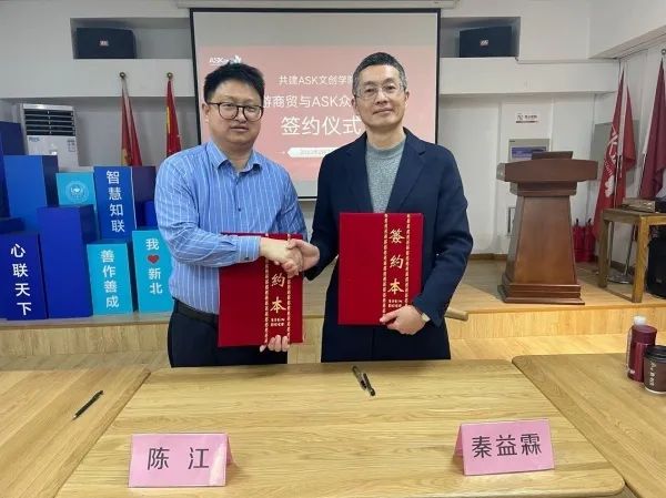 走访第一站,常州ASK众创部落有限公司。ASK众创部落专注于文创企业发展的园区综合服务运营商,聚焦“文创、科创、电商、新媒体、大创”5大生态圈。曾经荣获国家级众创空间、苏南国家自主创新示范基地、江苏省特色众创空间十强、江苏省科技创业孵化十大品牌运营机构等荣誉称号。公司董事长陈江带领我校一行人参观了公司,并对公司的运营做了深入介绍。双方本着推动职业教育和劳动就业体系互通发展,打通和拓宽技术技能人才培养和成长通道,推进现代职业教育体系建设,本着互相合作、共同发展、积极交流、互惠互利的原则,达成并共建“ASK文创学院”的合作共识。秦益霖校长与ASK董事长陈江先生签订合作协议。