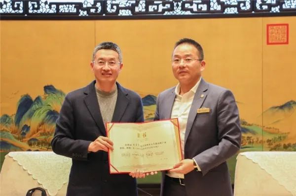 走访第六站,中吴宾馆。常州中吴国际酒店管理学院是常州市首家产业学院,自2020年11月19日正式成立以来,校企双方共同制定人才培养方案、共建师资队伍、共同培养学生,目前第四期学员已经赴产业学院学习,参与过产业学院学习的学生回校后在学习动力上有明显进步,专业认同感有明显提升。通过座谈校企双方达成共识,后期继续加深专业交流,深度融合?;嵋樽詈?,秦校长为陈勇华总经理颁发产业教授聘书,双方合影留念。