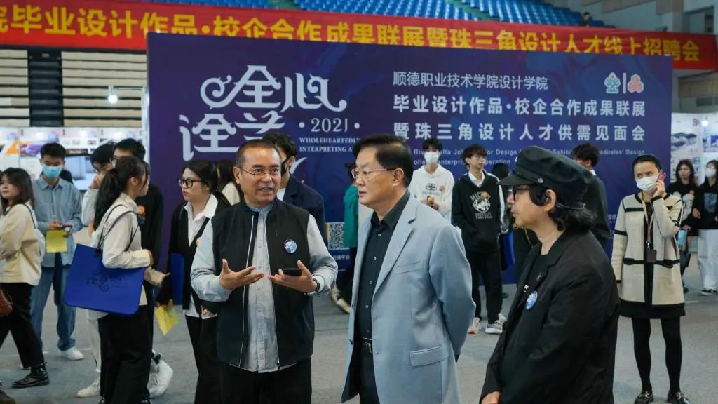 2021年12月17日,以“全心诠艺”为主题的2022届设计学院毕业设计作品·校企合作成果联展暨珠三角设计人才线上招聘会在梁銶琚礼堂举行。学校校长夏伟,党委委员、纪委书记黄伟坚,党委委员、副校长杨小东,以及设计学院全体师生、学校有关部门和二级学院师生代表5000余人参加活动。