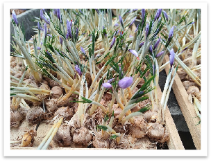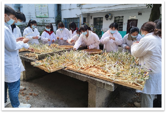 同学们在老师的指导下认真观察了西红花原植物形态特征,动手实践了西红花种球抹芽、花朵采收、花丝(柱头)采摘及干燥、种球上架、西红花药材品质评价等工作,了解了西红花从原植物到商品药材的全过程,收获良多。